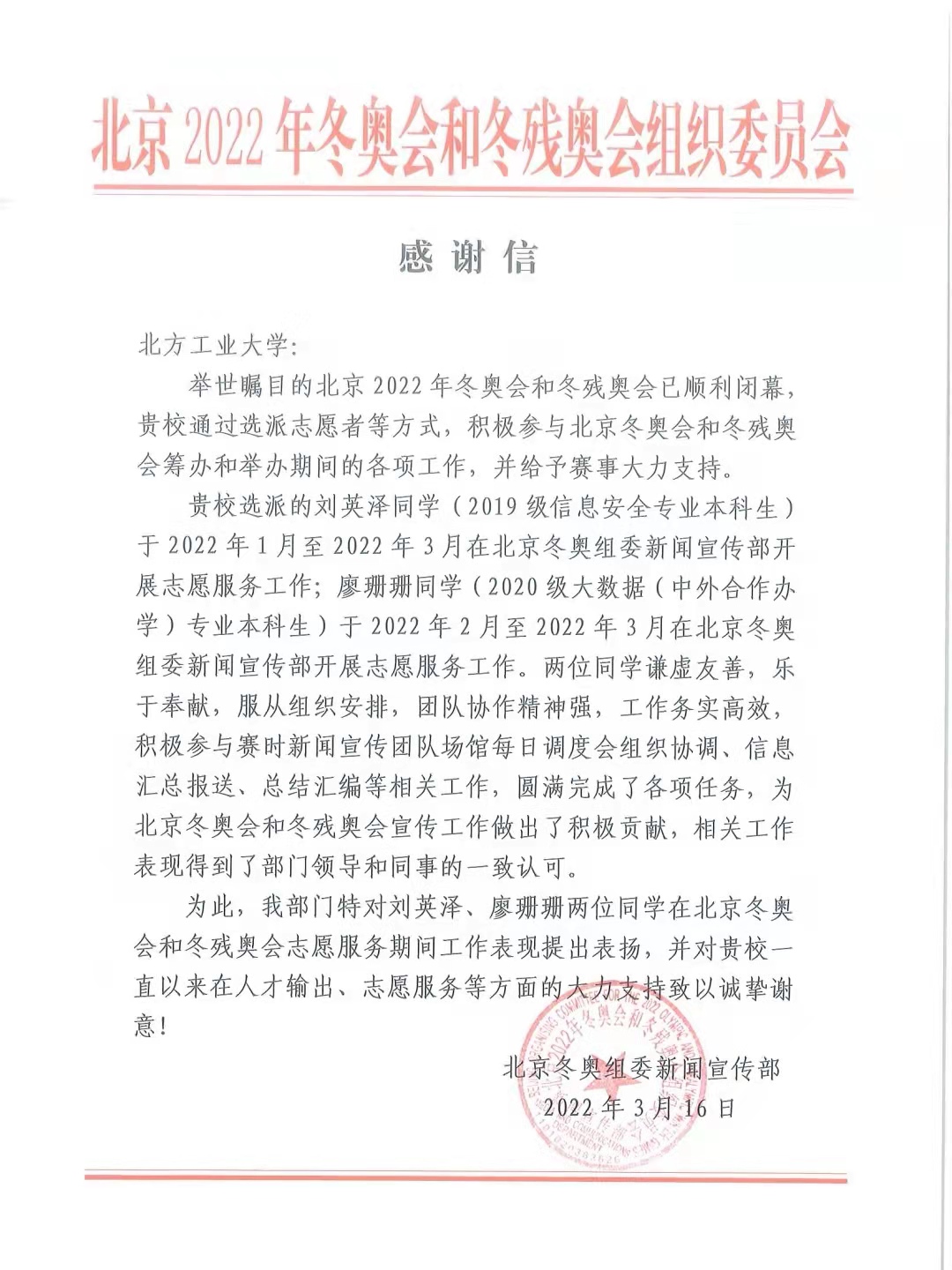 十分荣幸可以来到北京冬奥组委志愿者部宣传培训处大家庭,与这么多优秀的志愿者伙伴们一起收获,共同成长。还记得2015年北京申办冬奥成功,那时的我还是一名初中生,电视机里国际奥委会主席巴赫的一声“Beijing”点燃了我的冰雪热情。如今,作为一名大学生,能够有幸参与到冬奥盛会的志愿服务工作中,我深知使命光荣与责任重大,也深感锻炼机会的来之不易。成为冬奥志愿者是一种幸运,更是一种责任,是“一生一次,一次一生”的宝贵经历。在这段充实的时光里,我对“奉献、友爱、互助、进步”的志愿服务精神有了更深刻地理解。无论是赛前还是赛时,大家都在为每一个细节斟酌和努力,向世界呈现出最好的风貌。